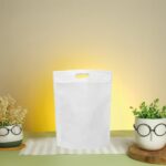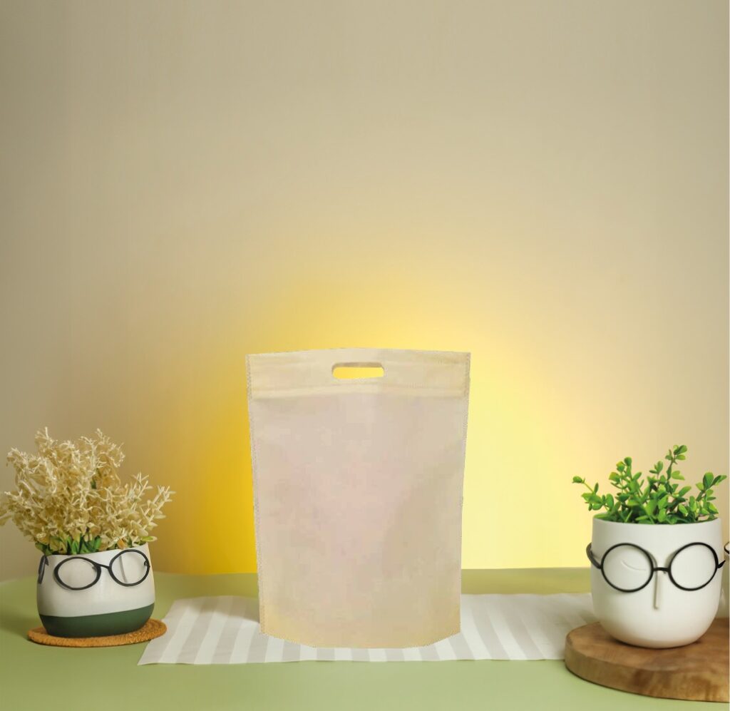 Ce sac au design simple et épuré est fabriqué en tissu non tissé 100 % polypropylène, alliant légèreté et résistance. Son format pratique, avec une découpe en forme de poignée (D-Cut), permet une prise en main confortable.