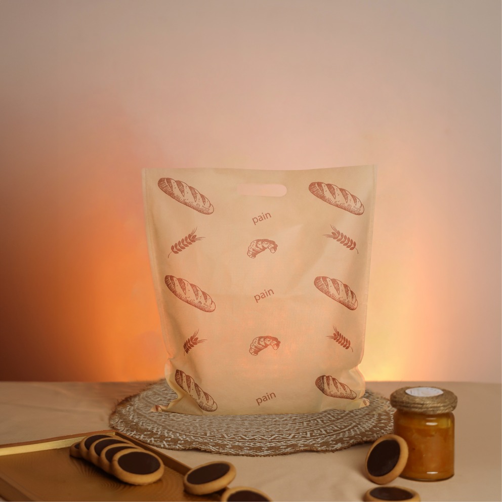 Sac boulangerie modèle D-cut Bag, fabriqué en tissu non tissé 100 % polypropylène.